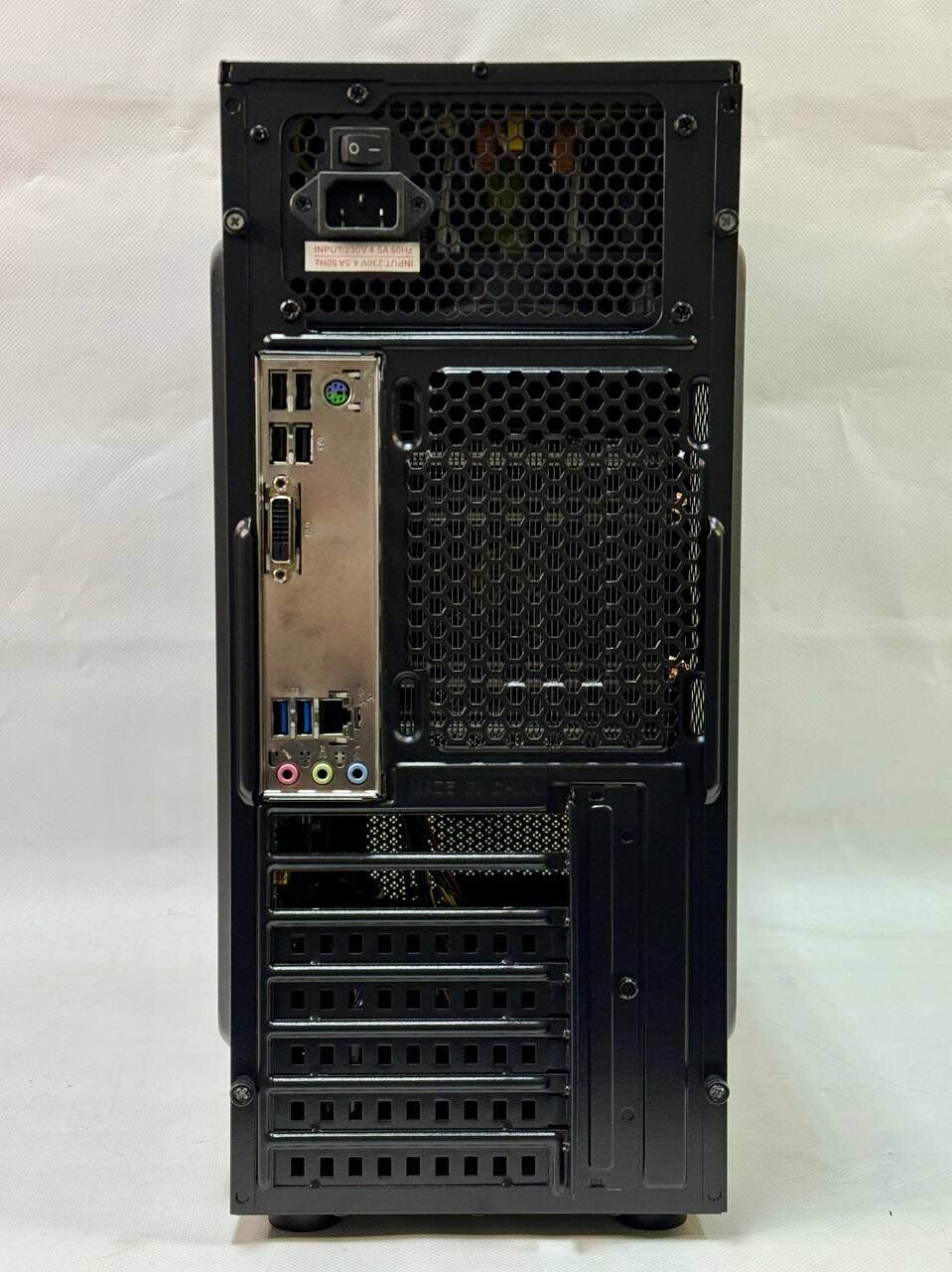 Порти: 5x USB 2.0, 4x USB 3.0, 1x PS/2, 1x DVI, 5x Audio, 1x LAN (RJ-45)